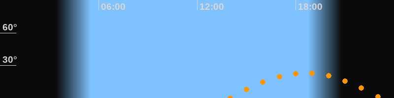 | Aufgang | 13:54 Uhr im Südosten (αAz = 115,4°) |