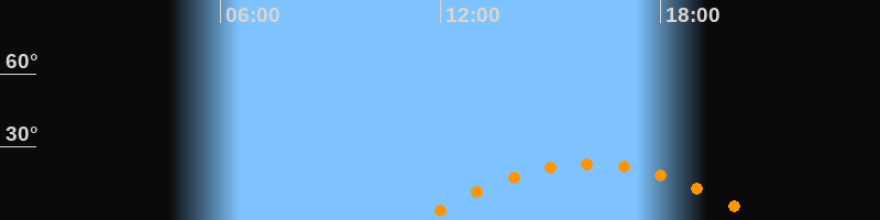 | Aufgang | 11:25 Uhr im Südosten (αAz = 115,4°) |