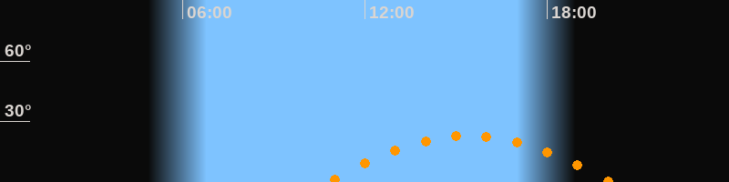 | Aufgang | 10:46 Uhr im Südosten (αAz = 115,4°) |