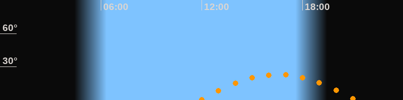 | Höchster Stand (Kulmination) | 16:31 Uhr (h = 23,1°) |