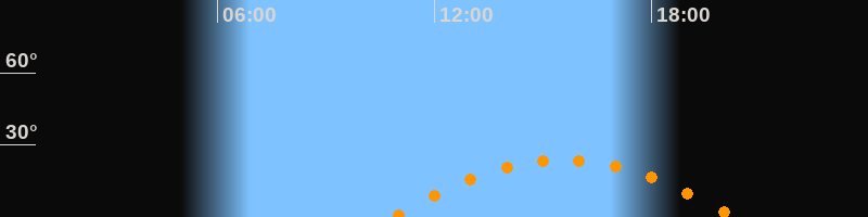 | Höchster Stand (Kulmination) | 15:34 Uhr (h = 23,8°) |