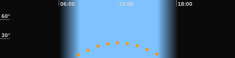 | Höchster Stand (Kulmination) | 12:05 Uhr (h = 23,8°) |