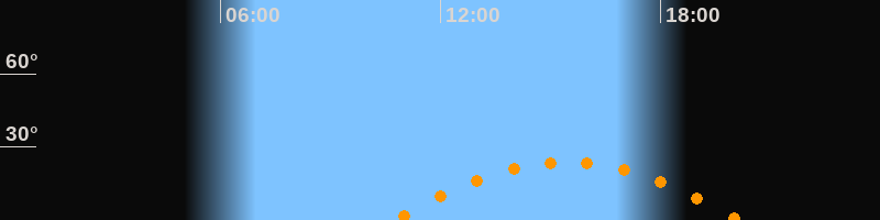 | Höchster Stand (Kulmination) | 15:26 Uhr (h = 23,8°) |