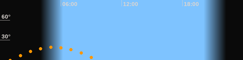 | Untergang | 09:35 Uhr im Südwesten (αAz = 238,1°) |