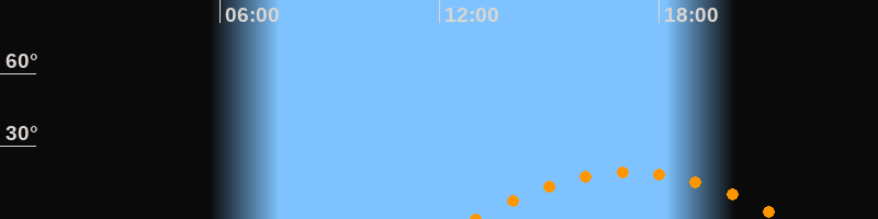 | Höchster Stand (Kulmination) | 17:12 Uhr (h = 19,3°) |