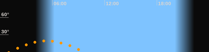 | Untergang | 09:38 Uhr im Südwesten (αAz = 238,1°) |