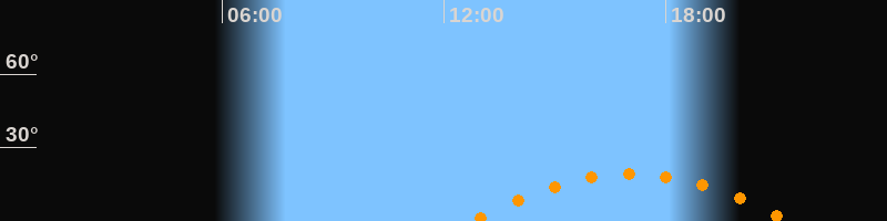 | Höchster Stand (Kulmination) | 17:04 Uhr (h = 19,3°) |