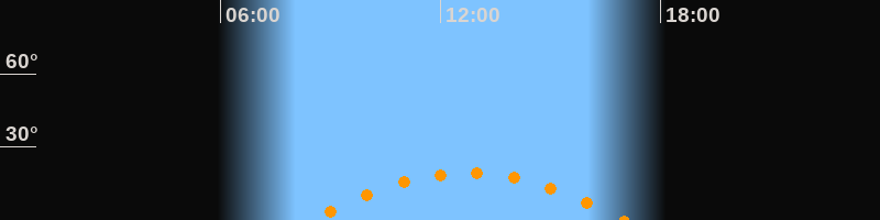 | Höchster Stand (Kulmination) | 12:44 Uhr (h = 19,3°) |