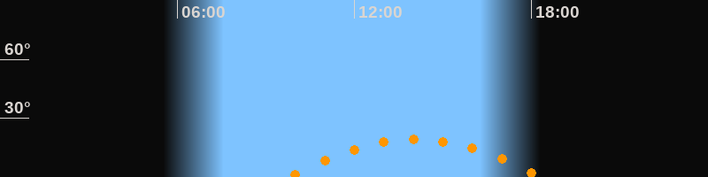 | Höchster Stand (Kulmination) | 14:04 Uhr (h = 19,3°) |