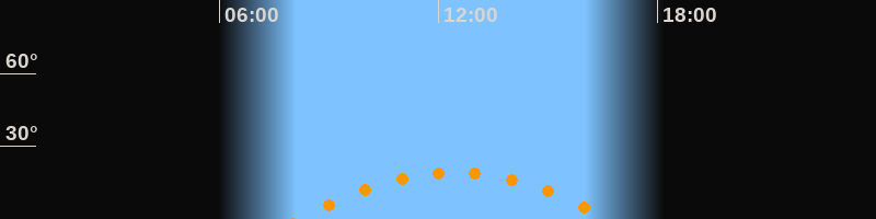 | Höchster Stand (Kulmination) | 12:25 Uhr (h = 19,3°) |