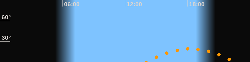 | Höchster Stand (Kulmination) | 18:16 Uhr (h = 19,3°) |