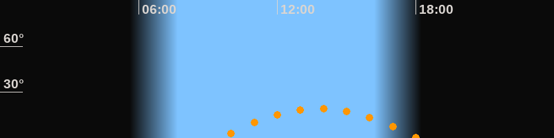 | Höchster Stand (Kulmination) | 13:48 Uhr (h = 19,3°) |
