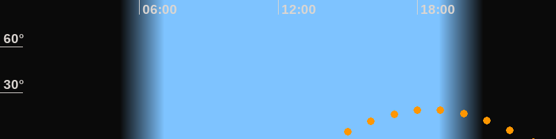 | Höchster Stand (Kulmination) | 18:33 Uhr (h = 19,3°) |