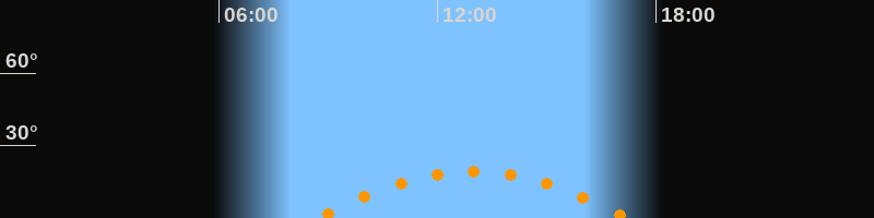 | Aufgang | 08:40 Uhr im Südosten (αAz = 121,9°) |