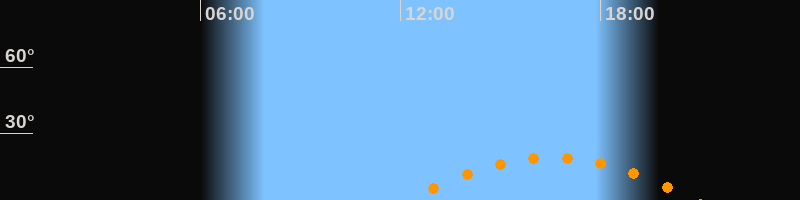 | Höchster Stand (Kulmination) | 16:32 Uhr (h = 19,3°) |