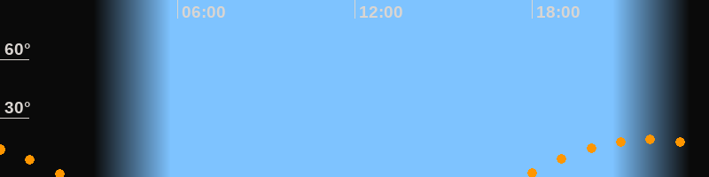 | Aufgang | 17:38 Uhr im Südosten (αAz = 121,9°) |