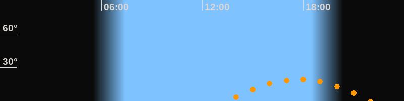 | Höchster Stand (Kulmination) | 17:44 Uhr (h = 19,3°) |