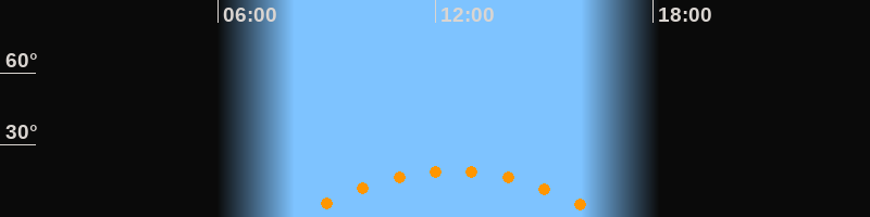 | Höchster Stand (Kulmination) | 12:28 Uhr (h = 19,3°) |