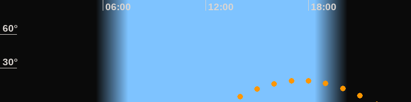 | Aufgang | 13:16 Uhr im Südosten (αAz = 121,9°) |