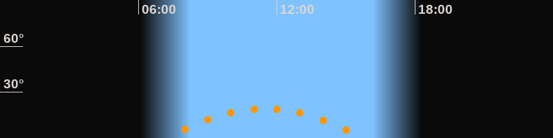 | Höchster Stand (Kulmination) | 11:28 Uhr (h = 19,3°) |