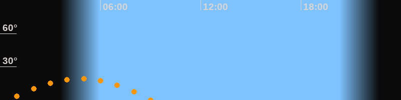 | Untergang | 09:04 Uhr im Südwesten (αAz = 238,1°) |