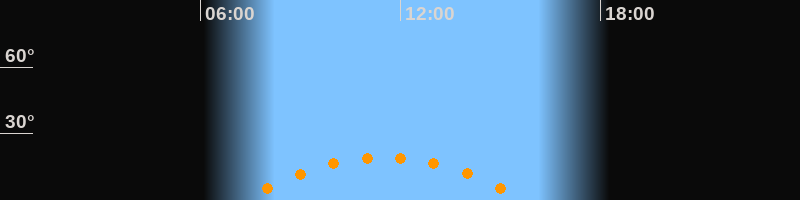 | Höchster Stand (Kulmination) | 11:30 Uhr (h = 19,3°) |