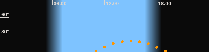 | Höchster Stand (Kulmination) | 14:57 Uhr (h = 19,3°) |