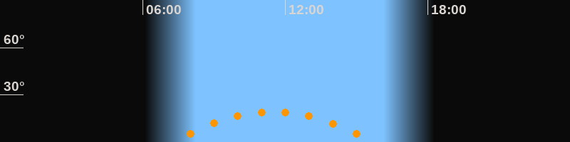 | Höchster Stand (Kulmination) | 11:29 Uhr (h = 19,3°) |