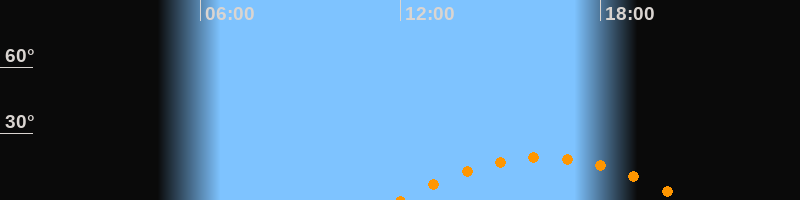 | Höchster Stand (Kulmination) | 16:17 Uhr (h = 19,3°) |