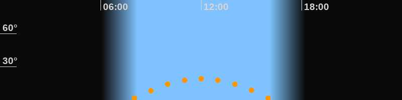 | Höchster Stand (Kulmination) | 12:01 Uhr (h = 19,3°) |
