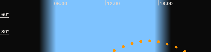 | Höchster Stand (Kulmination) | 16:54 Uhr (h = 19,3°) |