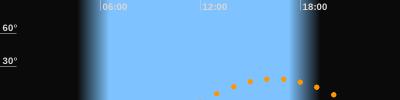 | Höchster Stand (Kulmination) | 16:26 Uhr (h = 19,3°) |