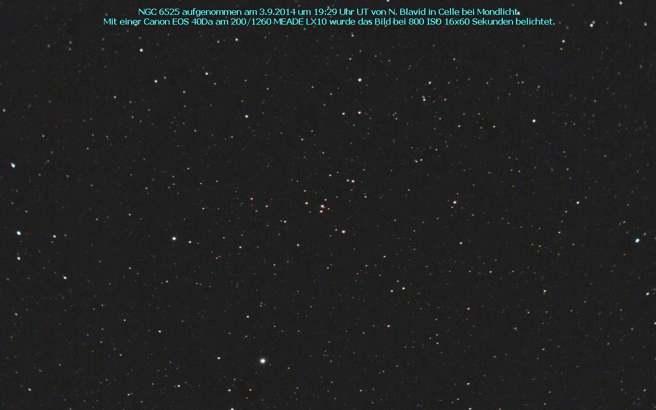 NGC 6525 ist ein Sternenmuster, kein eigentlicher Sternhaufen. Entdeckt wurde das Objekt am 29. Juli 1829 von John Herschel.