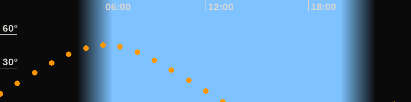 | Aufgang | 23:07 Uhr im Osten (αAz = 71,7°) |