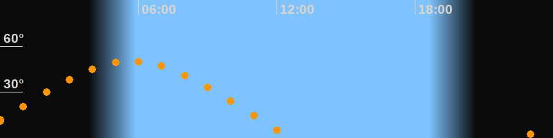 | Aufgang | 22:39 Uhr im Osten (αAz = 71,7°) |