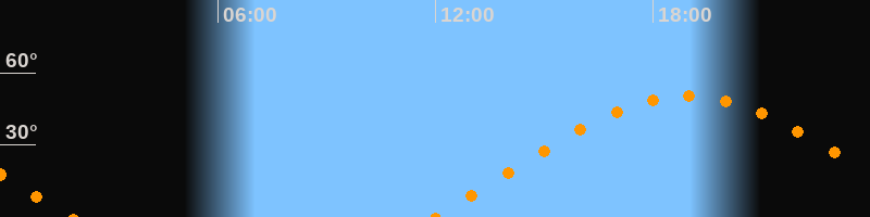 | Aufgang | 11:59 Uhr im Osten (αAz = 71,7°) |