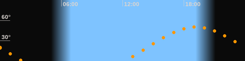 | Aufgang | 12:12 Uhr im Osten (αAz = 71,7°) |