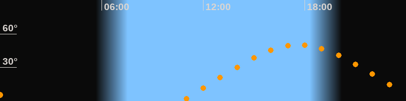 | Aufgang | 10:41 Uhr im Osten (αAz = 71,7°) |
