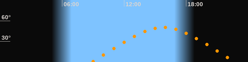 | Aufgang | 08:50 Uhr im Osten (αAz = 71,7°) |