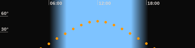 | Höchster Stand (Kulmination) | 12:00 Uhr (h = 50,3°) |