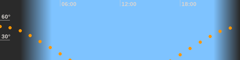 | Untergang | 07:03 Uhr im Westen (αAz = 288,3°) |
