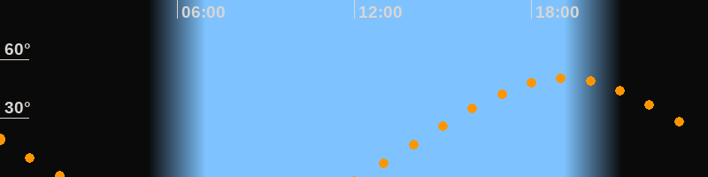 | Aufgang | 12:09 Uhr im Osten (αAz = 71,7°) |