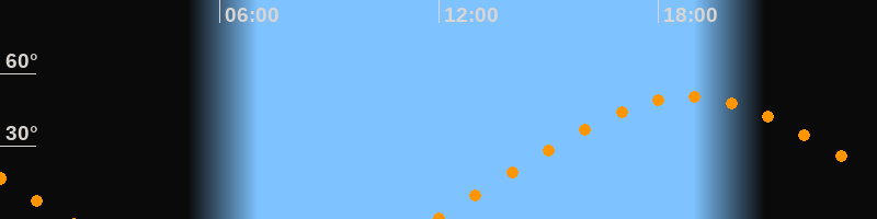 | Aufgang | 11:53 Uhr im Osten (αAz = 71,7°) |