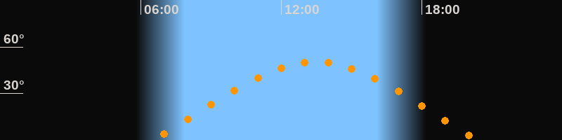 | Aufgang | 06:30 Uhr im Osten (αAz = 71,7°) |