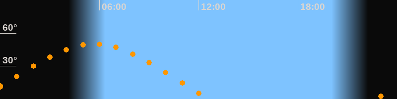 | Aufgang | 22:39 Uhr im Osten (αAz = 71,7°) |