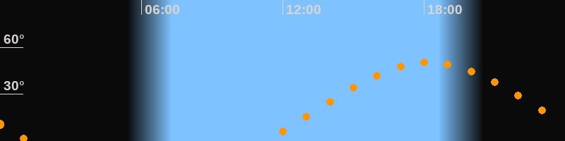 | Aufgang | 11:15 Uhr im Osten (αAz = 71,7°) |