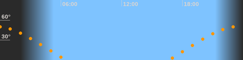 | Aufgang | 16:34 Uhr im Osten (αAz = 71,7°) |