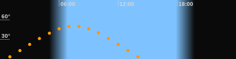 | Höchster Stand (Kulmination) | 07:30 Uhr (h = 50,3°) |