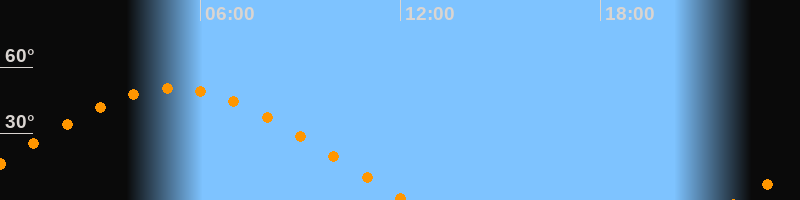 | Aufgang | 22:09 Uhr im Osten (αAz = 71,7°) |