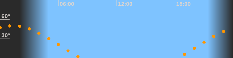 | Aufgang | 18:17 Uhr im Osten (αAz = 71,7°) |